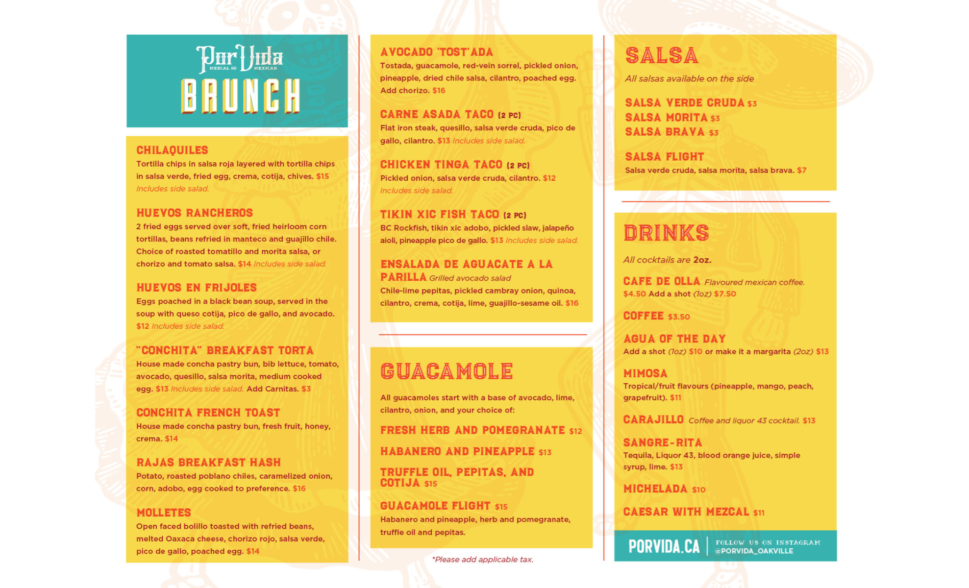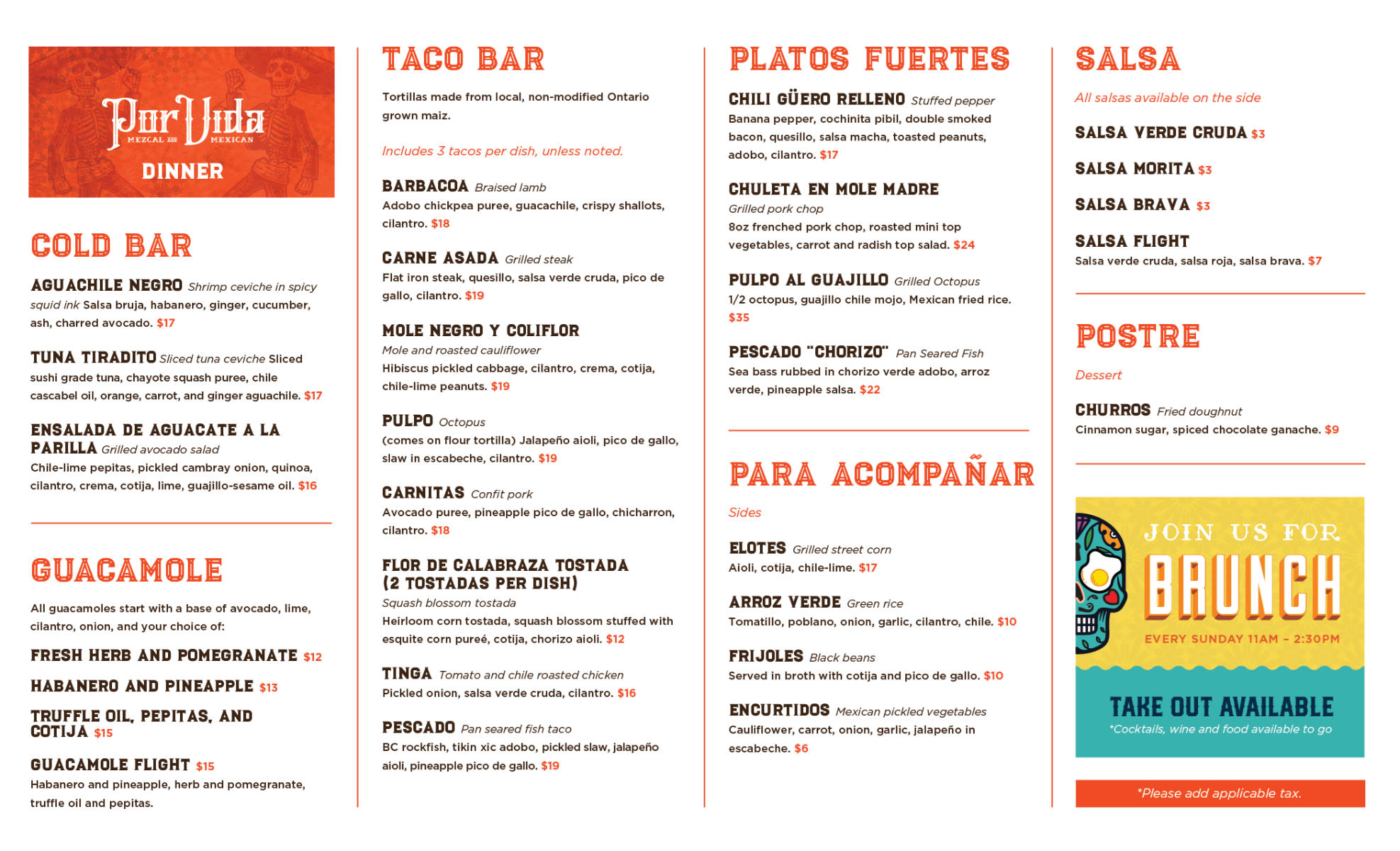 * Please note that our kitchen is closed 3-4pm daily to prepare for dinner service. During this time, we offer guac and salsa for order and drink specials. Ask your server!